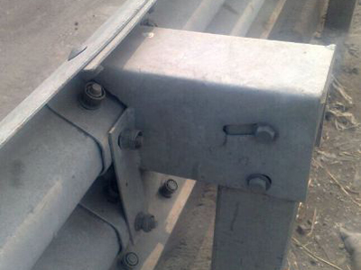 主要用于公路車道的隔離防護 波形護欄實用新型涉及一種公路中央分隔帶開口處用組合型波形板活動式鋼護欄,該護欄由兩片波形鋼護欄板及兩者之間固定夾放的兩根立柱構成,兩根立柱固定夾裝在兩片波形鋼護欄板之間。在公路正常營運時,該護欄利用插拔立柱可方便地插入開口處預先設置的插拔孔內,起到隔離和防護作用,同時與公路外邊上的護欄帶相呼應,整齊劃一,美觀配套。車輛對其碰撞時,由于波形鋼護欄板有良好的耐撞性能和吸收能量的作用,既不容易被撞毀,同時又可對車輛和司乘人員起到很好的保護作用。當路面維修或其它原因需要并通時,可方便地把開口處的各組護欄立柱拔出移走,開辟通道,便于車輛通行。 波形梁護欄是半剛性護欄的主要形式,它是一種以波紋狀鋼護欄板相互拼接并由主柱支撐的連續結構。它利用土基、立柱、橫梁的變形來吸收碰撞能量,并迫使失控車輛改變方向,回復到正常的行駛方向,防止車輛沖出路外,以保護車輛和乘客,減少事故造成的損失。波形梁護欄鋼柔相兼,具有較強的吸收碰撞能量的能力,具有較好的視線誘導功能,能與道路線形相協調,外形美觀,可在小半徑彎道上使用,損壞處容易更換。組合波形梁護欄可在窄中央分隔帶上使用。對于車輛越出路()外,有可能造成嚴重后果的區段,可選擇加強波形梁護欄。