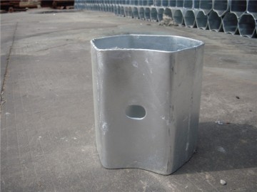 產品簡介: 托架(支撐梁) 規格型號:70*300*4.5; 厚度有4.5厚,4.0厚 表面處理:熱鍍鋅 / 鍍鋅噴塑 托架與立柱和護欄板連接,使用2個M16*45的連接螺栓和1個M16*170的連接螺栓。 立柱與板子相連接的方式有防阻塊式和托架式兩種。 一般鄉村路或者比較窄的路面用托架式連接。